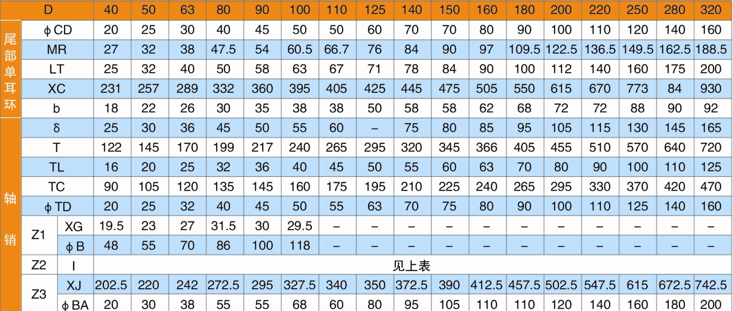 D/d:缸徑mm/活塞桿徑mm