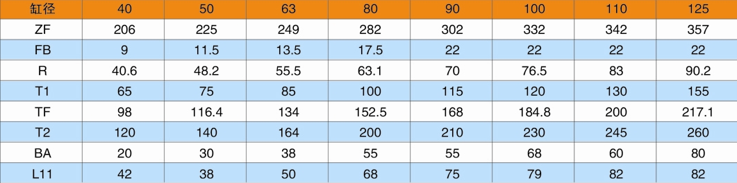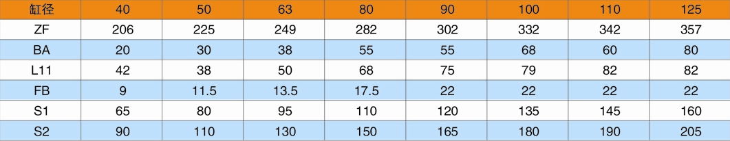F1=頭部長方法蘭(用于缸徑D≤125);