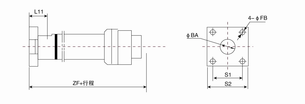 F2=尾部長方法蘭(用于缸徑D≤125);