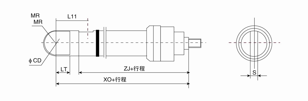 L1:活塞桿端連接方式代號 L1=桿端外螺紋;L2=桿端內螺紋▲